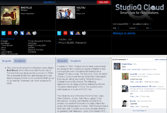 Coloana din dreapta permite interacţiunea cu ascultătorii online prin interfata DJ Zone si Facebook.